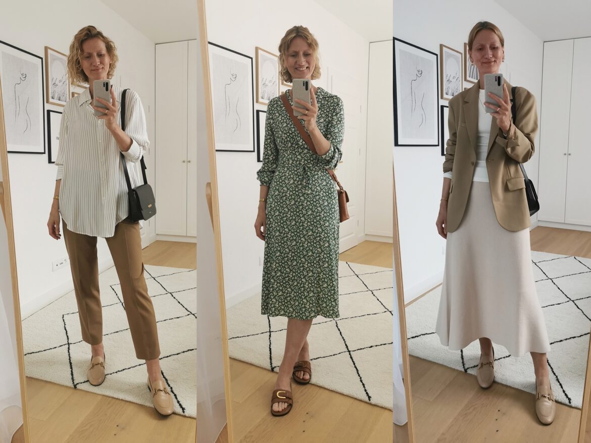 Zapraszam Was na kolejny tygodniowy przegląd stylizacji. Dziś pojawia się mieszanka wiosenno-letnich zestawów z ostatnich tygodni, w której dominują kolory bazowe typu kremowy i camelowy, przełamane zielenią, moim kolorem uzupełniającym. Bardzo polubiłam się z zielenią i łapię się na tym, że gdy szukam czegoś nowego od razu biorę pod uwagę ten kolor. Drugim kolorem, który sobie wprowadzam do garderoby jest koralowy. Myślę też o odcieniach żółci i pomarańczu.