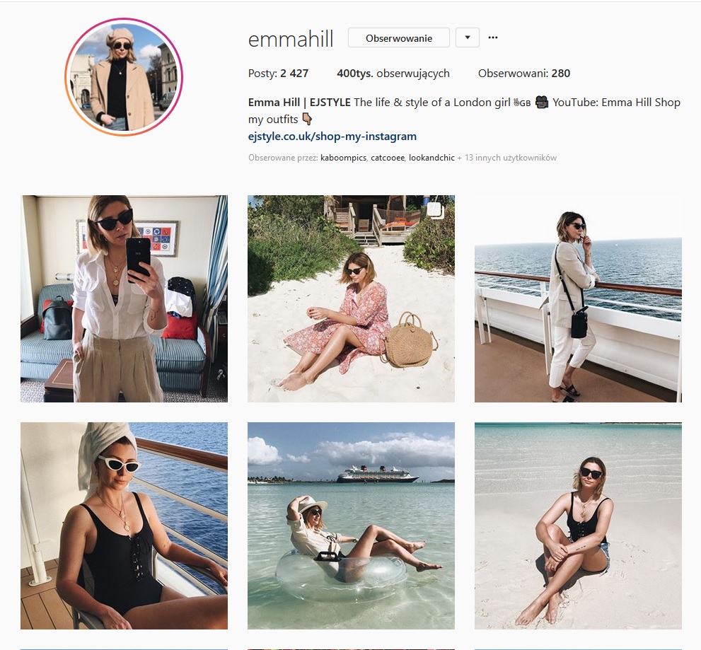 Instagram jest dla mnie źródłem inspiracji modowej. Pisałam Wam kiedyś o profilach, które śledzę. Od tego czasu doszły nowe, a część przestała być aktualna, bo i mój styl się zmienia. Moje kroki jednak idą zawsze w stronę mody klasycznej, niewymuszonej, nieprzekombinowanej. Styl Emmy Hill taki właśnie jest. Proste, klasyczne kroje, zamiłowanie do koszul, marynarek i dżinsu to zdecydowanie moje klimaty.